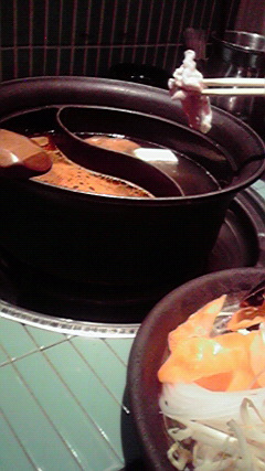 火鍋おいしいよ火鍋。辛くないっていうのに美衣さんはダメなようです。火鍋でレタしゃぶとか最高じゃねーの。