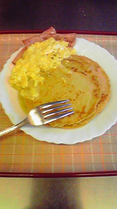 正直に言うならばスクランブルエッグにはパセリを入れたくてしょうがなかった。某様の赤猫さんにあやかって。いちいち取りはらうとか考えたらかわいくてしょうがない。代打の万能ネギもなかったし、紫蘇もないのでえらく黄色っぽいメニューです。緑か赤がほしいところです。まあこれにレタスとプチトマトと、水気にカットオレンジでも添えたら完璧ってやつです。